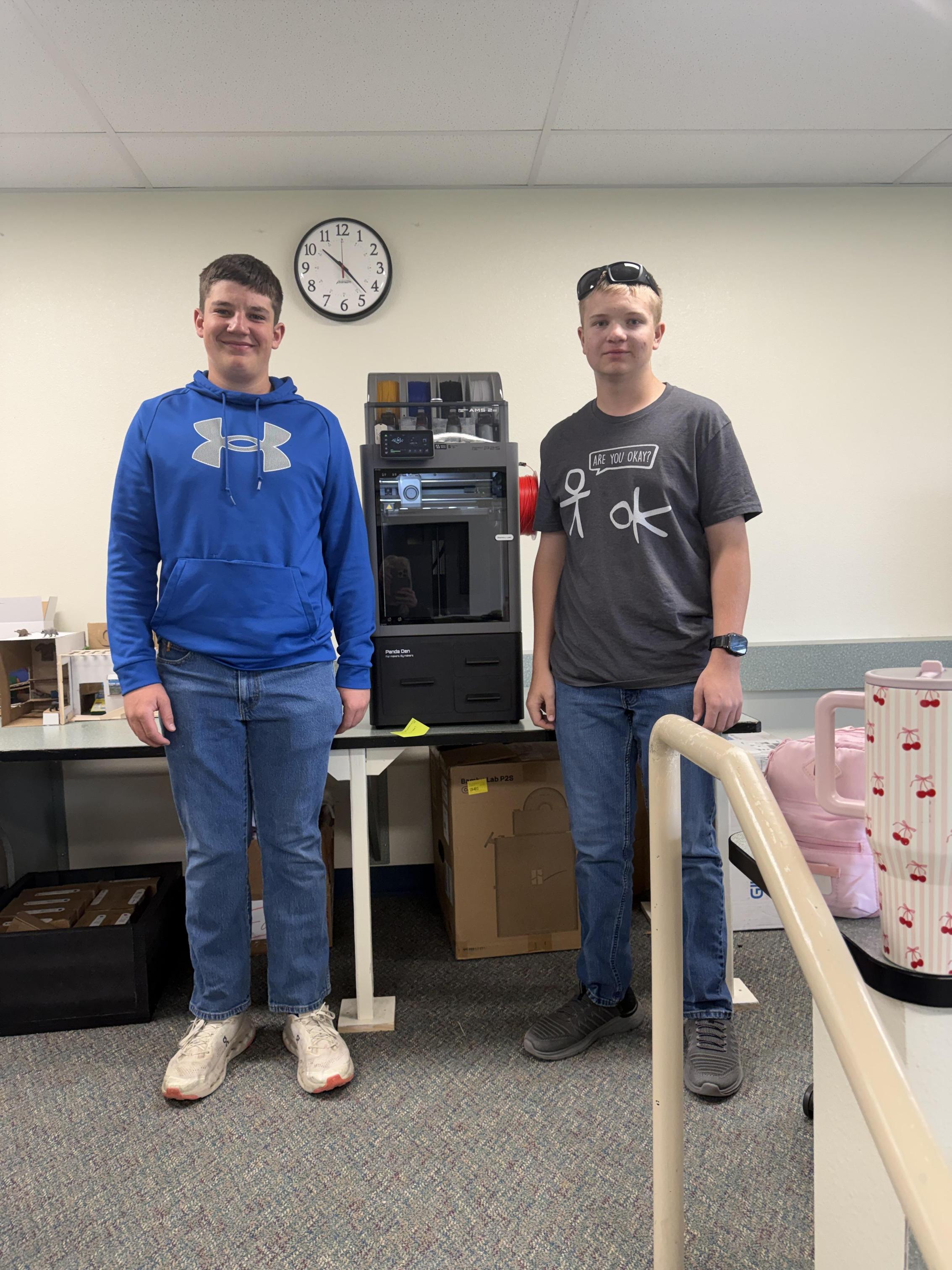 A big thank you to Karson Koch and Todd Makings for researching several different 3D printer models and helping guide this purchase. We also appreciate Mr. Thistle for getting the software installed and up and running.